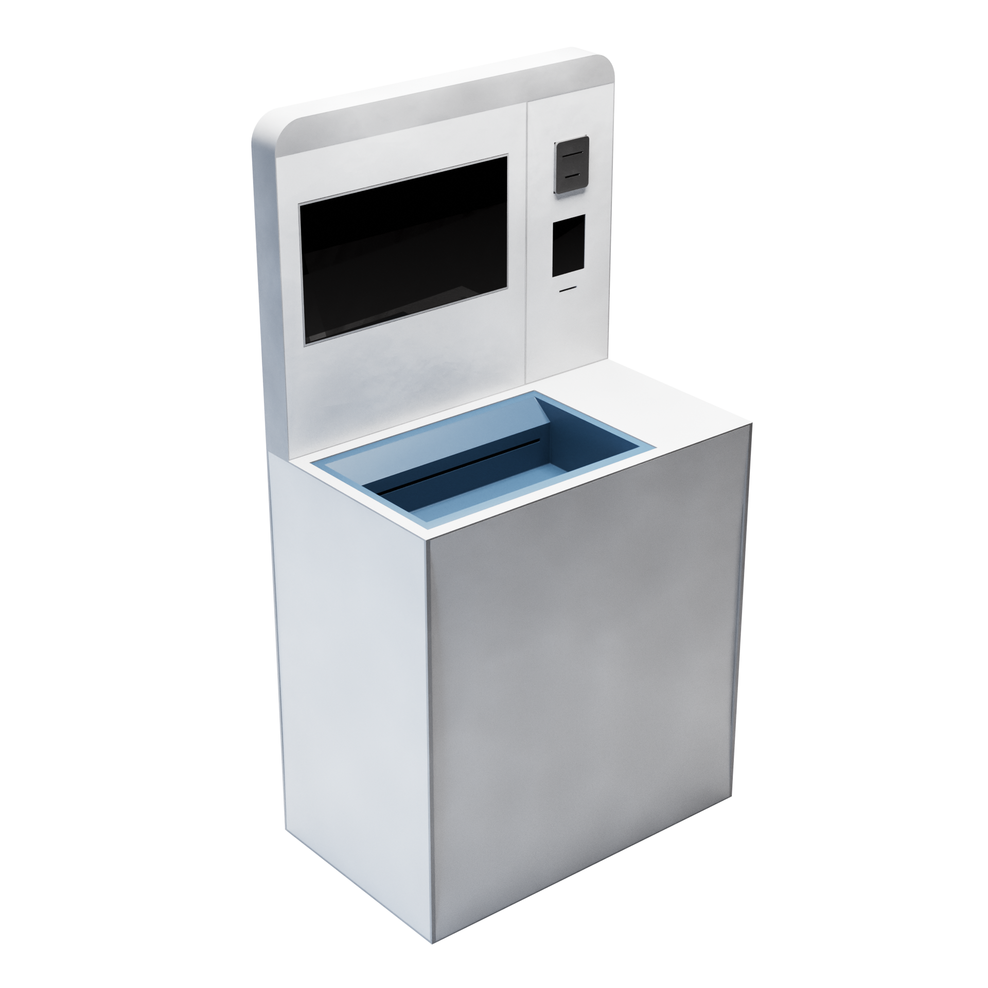 Shopping cart for self-service and self-payment by customers in grocery stores.